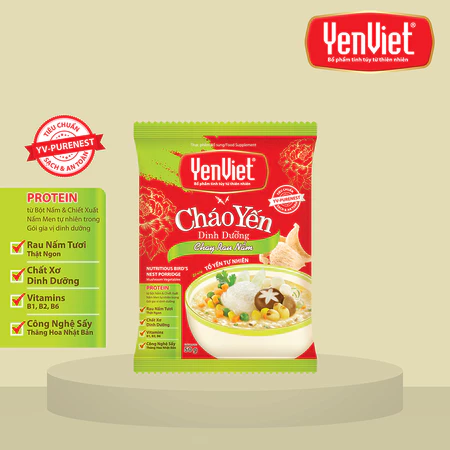 Cháo dinh dưỡng chay rau nấm ăn liền Yến Việt là một sản phẩm ngon miệng và bổ dưỡng, rất thích hợp cho những ai theo chế độ ăn chay hoặc đang tìm kiếm một món ăn nhẹ nhàng nhưng đầy đủ dinh dưỡng.