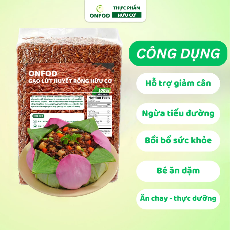 Ngoài ra, gạo lứt huyết rồng còn chứa nhiều chất dinh dưỡng như chất xơ, vitamin B, sắt, và chất chống oxy hóa, giúp cung cấp năng lượng và hỗ trợ sức khỏe tổng thể.