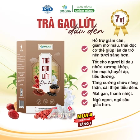 1. Trà gạo lứt đậu đen 7 vị TRATOSA giảm mỡ bụng, mỡ máu, thải độc cơ thể, mát gan nguyên liệu tự nhiên an toàn