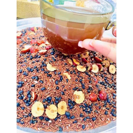 - Rang tay thủ công: Phương pháp rang tay giúp giữ lại tối đa hương thơm và dinh dưỡng của gạo lứt, táo đỏ và đậu đen, mang đến một trải nghiệm trà tinh tế và đậm đà.