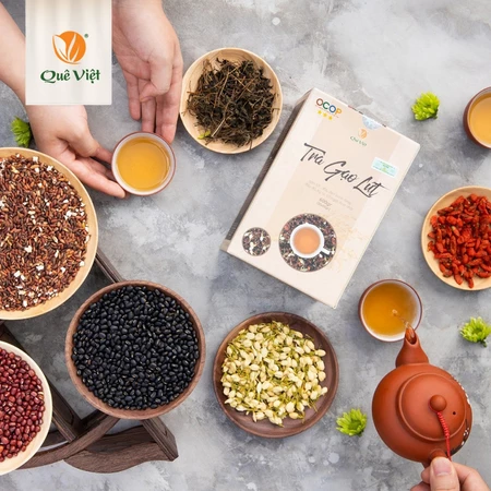 7. Trà gạo lứt Quê Việt thanh lọc gan, giải độc cơ thể nguyên liệu tự nhiên